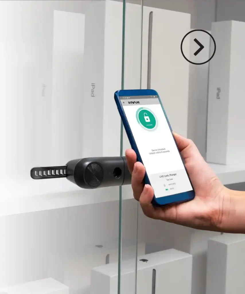 Padlock es el candado electrónico de InVue diseñado para ofrecer seguridad de alto nivel en productos en exhibición, herramientas o zonas controladas.